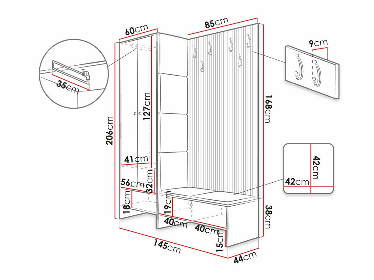 Vaatekaapin mitat: