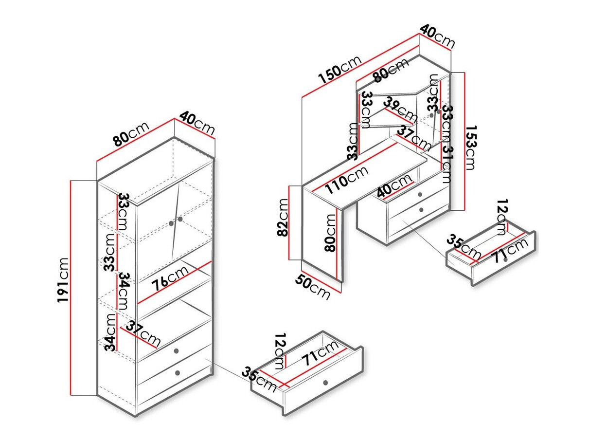 191 x 80 x 40 cm