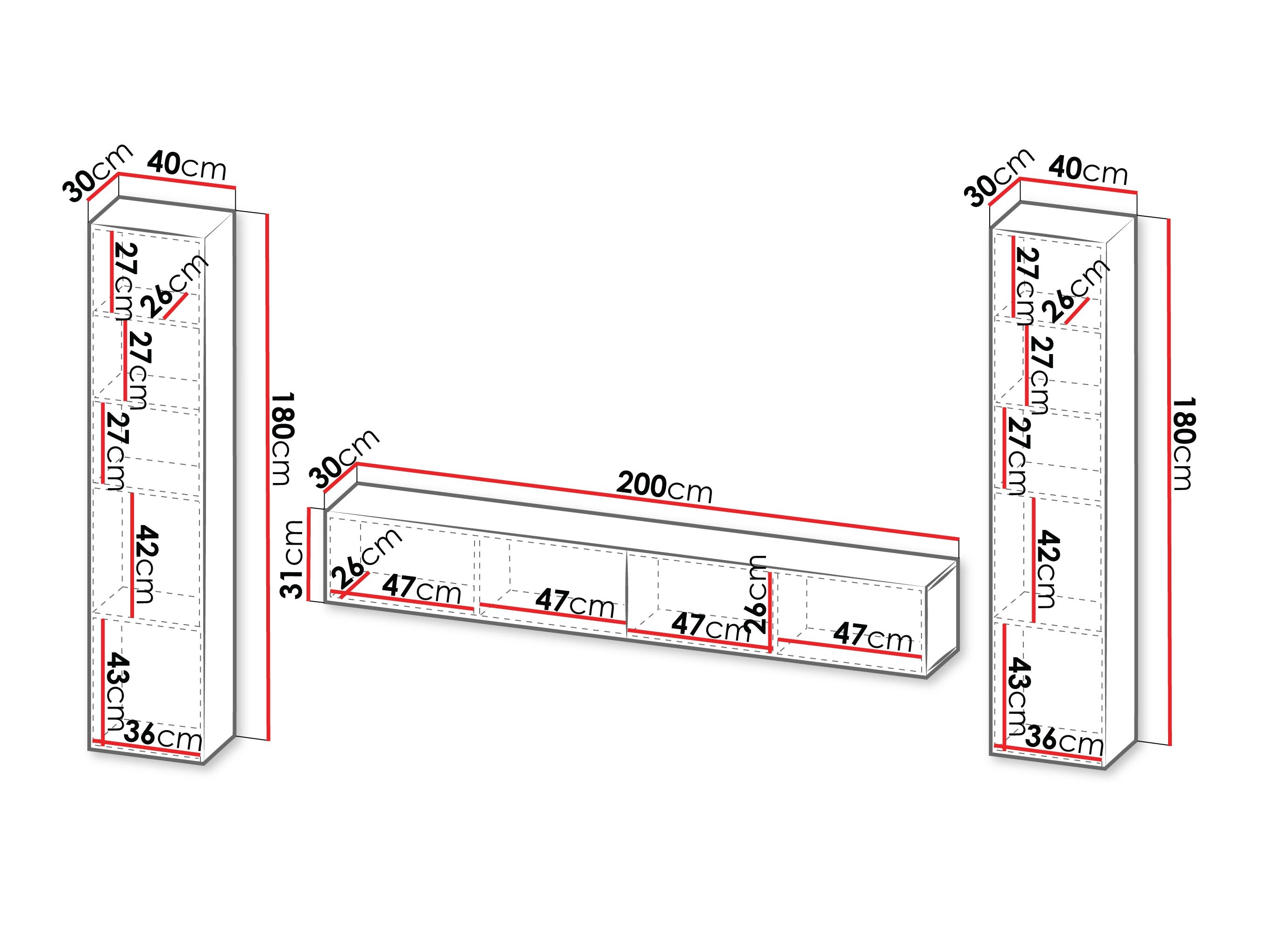Seinäkiinnitystiedot. Seinään kiinnitettävissä tai ripustettavissa huonekaluissa ei ole mukana kiinnitysruuveja, joten ne on hankittava erikseen. Ruuvit ja poraussyvyys tulee valita seinän mukaan. Valitse asennustyökalut huonekalujen painon ja seinän materiaalin mukaan, kuten kipsilevy, tiili tai puu. Kiinnityksen laadun ja turvallisuuden takaamiseksi tulee käyttää seinätyypille suunniteltuja ruuveja.