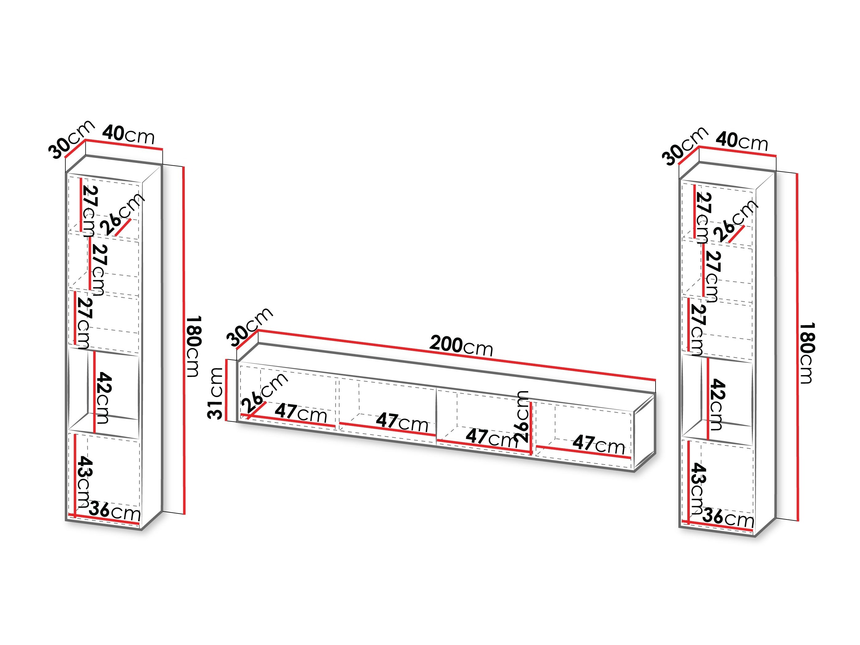 Seinäkiinnitystiedot. Seinään kiinnitettävissä tai ripustettavissa huonekaluissa ei ole mukana kiinnitysruuveja, joten ne on hankittava erikseen. Ruuvit ja poraussyvyys tulee valita seinän mukaan. Valitse asennustyökalut huonekalujen painon ja seinän materiaalin mukaan, kuten kipsilevy, tiili tai puu. Kiinnityksen laadun ja turvallisuuden takaamiseksi tulee käyttää seinätyypille suunniteltuja ruuveja.