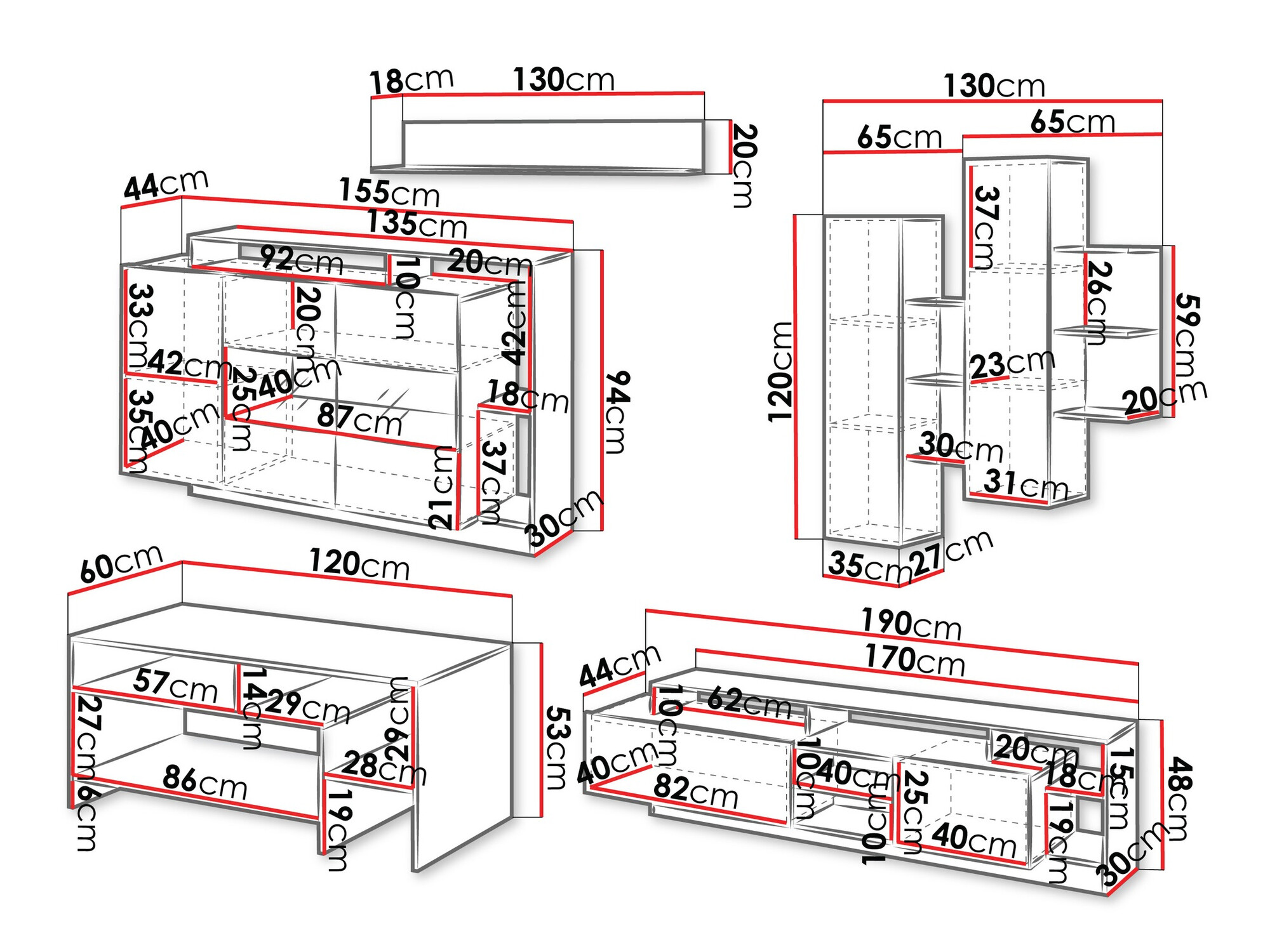 48 x 190 x 44 cm