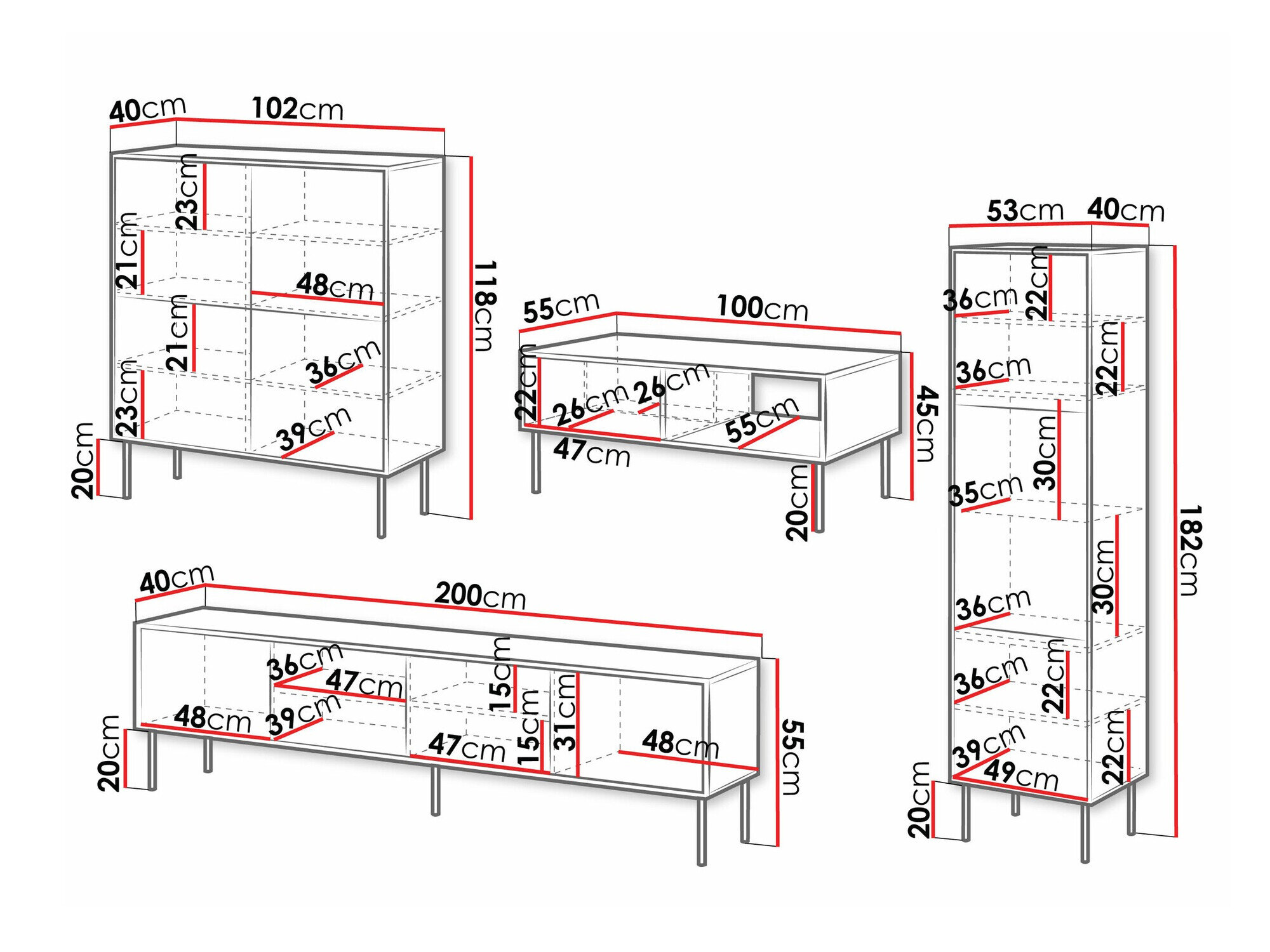 55 x 200 x 40 cm