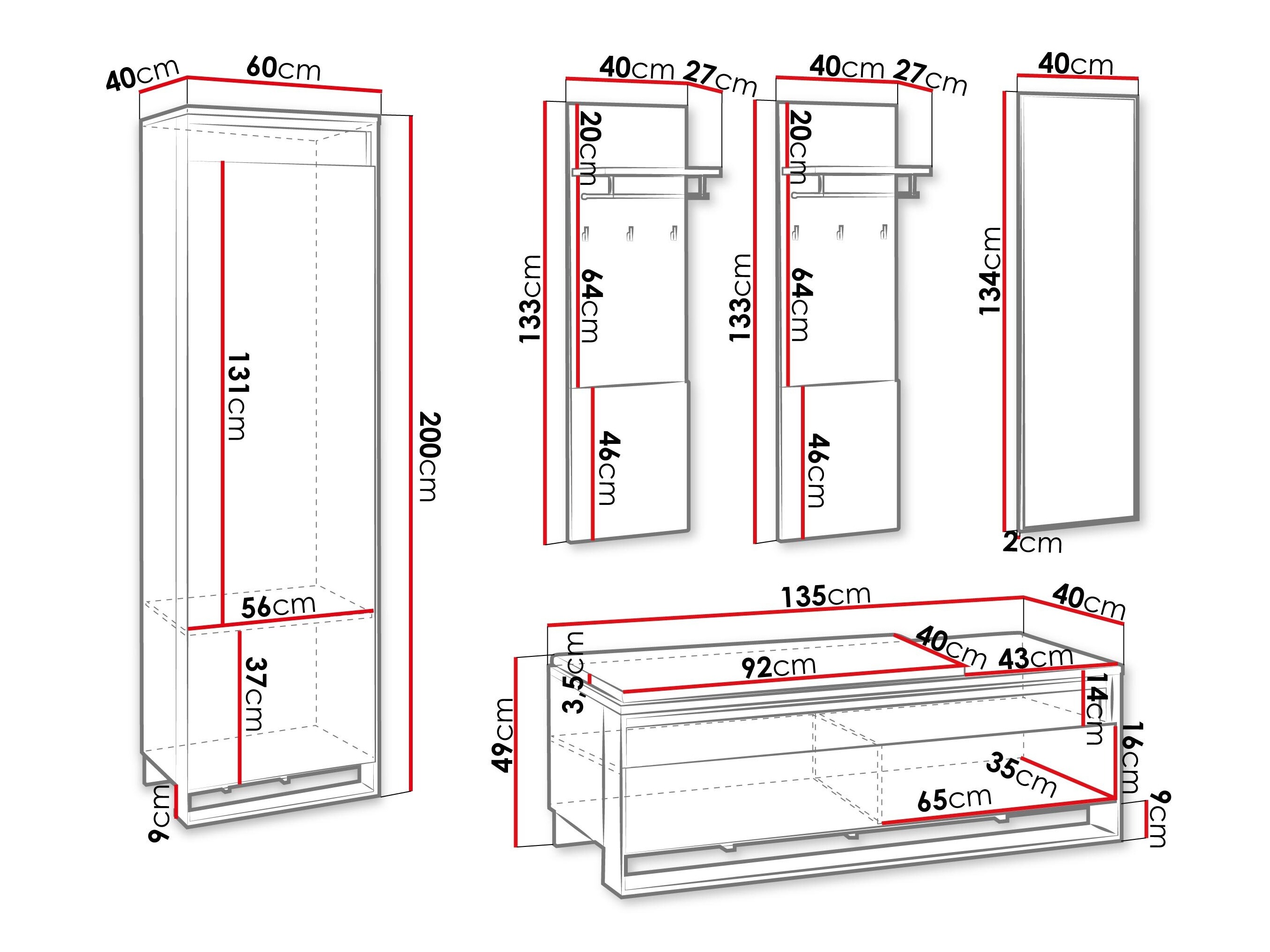 Vaatekaapin mitat: