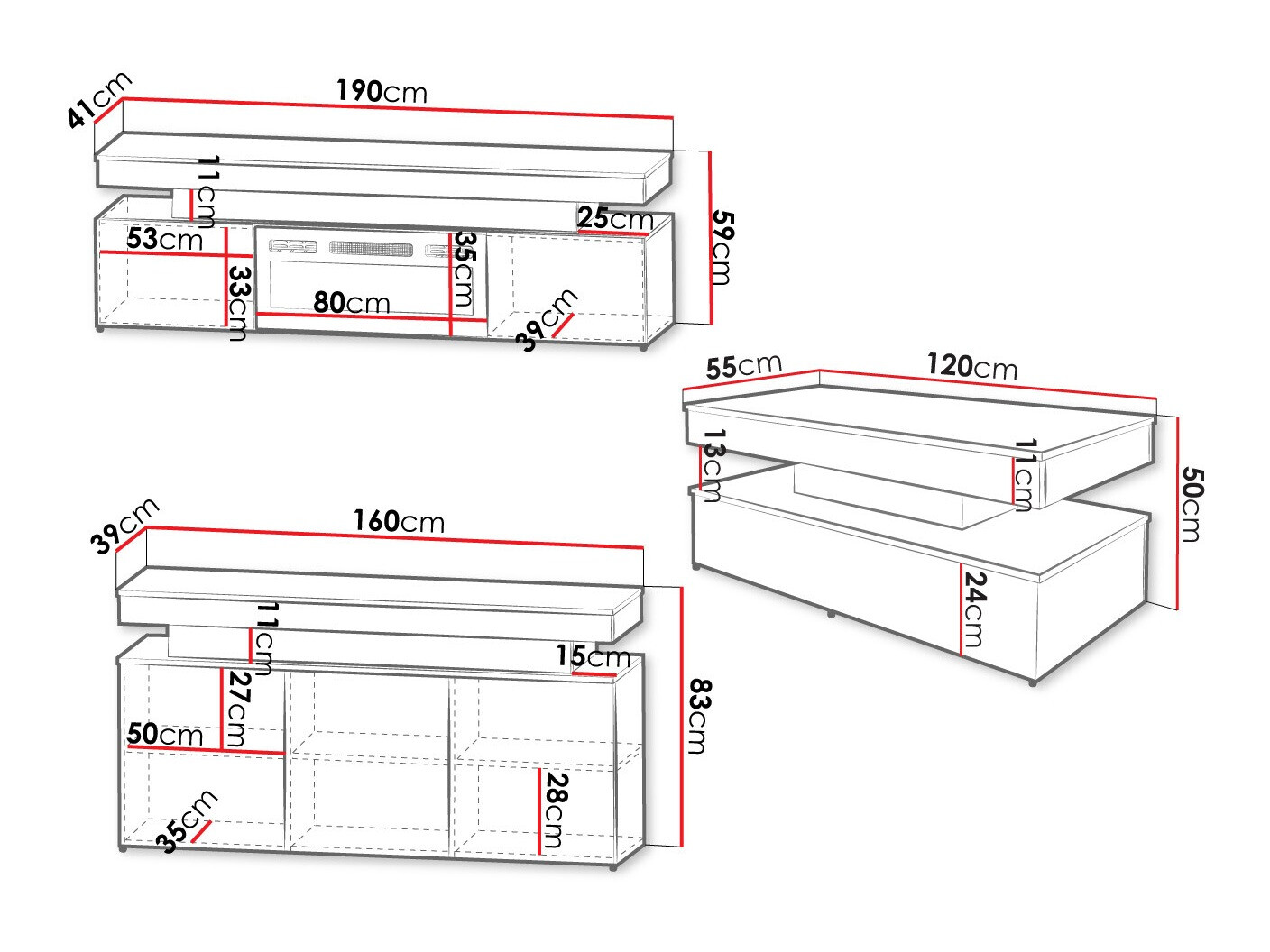 83 x 160 x 39 cm
