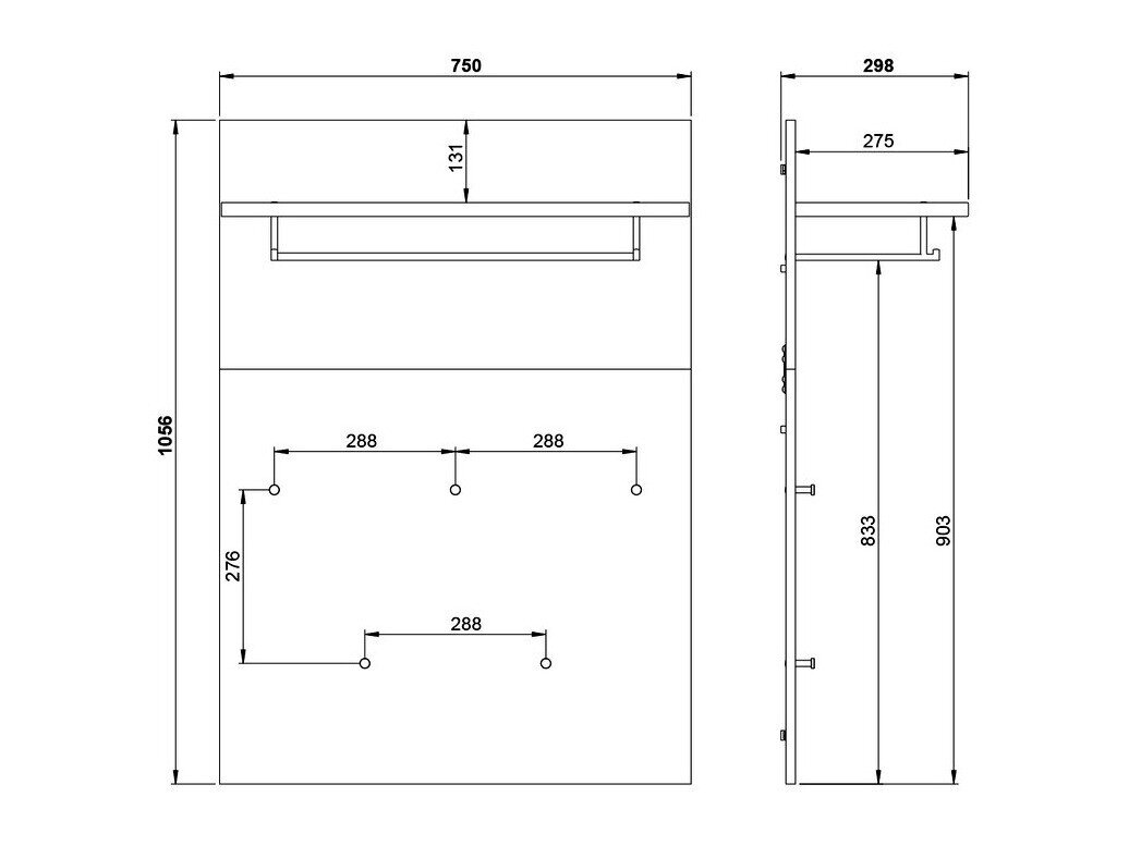 • Seinäkiinnitteinen naulakko