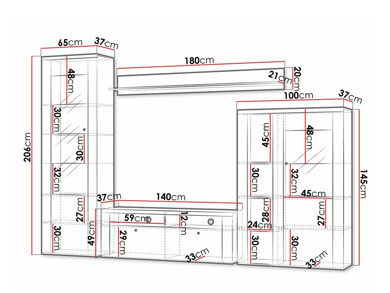 Seinäkiinnitystiedot. Seinään kiinnitettävissä tai ripustettavissa huonekaluissa ei ole mukana kiinnitysruuveja, joten ne on hankittava erikseen. Ruuvit ja poraussyvyys tulee valita seinän mukaan. Valitse asennustyökalut huonekalujen painon ja seinän materiaalin mukaan, kuten kipsilevy, tiili tai puu. Kiinnityksen laadun ja turvallisuuden takaamiseksi tulee käyttää seinätyypille suunniteltuja ruuveja.