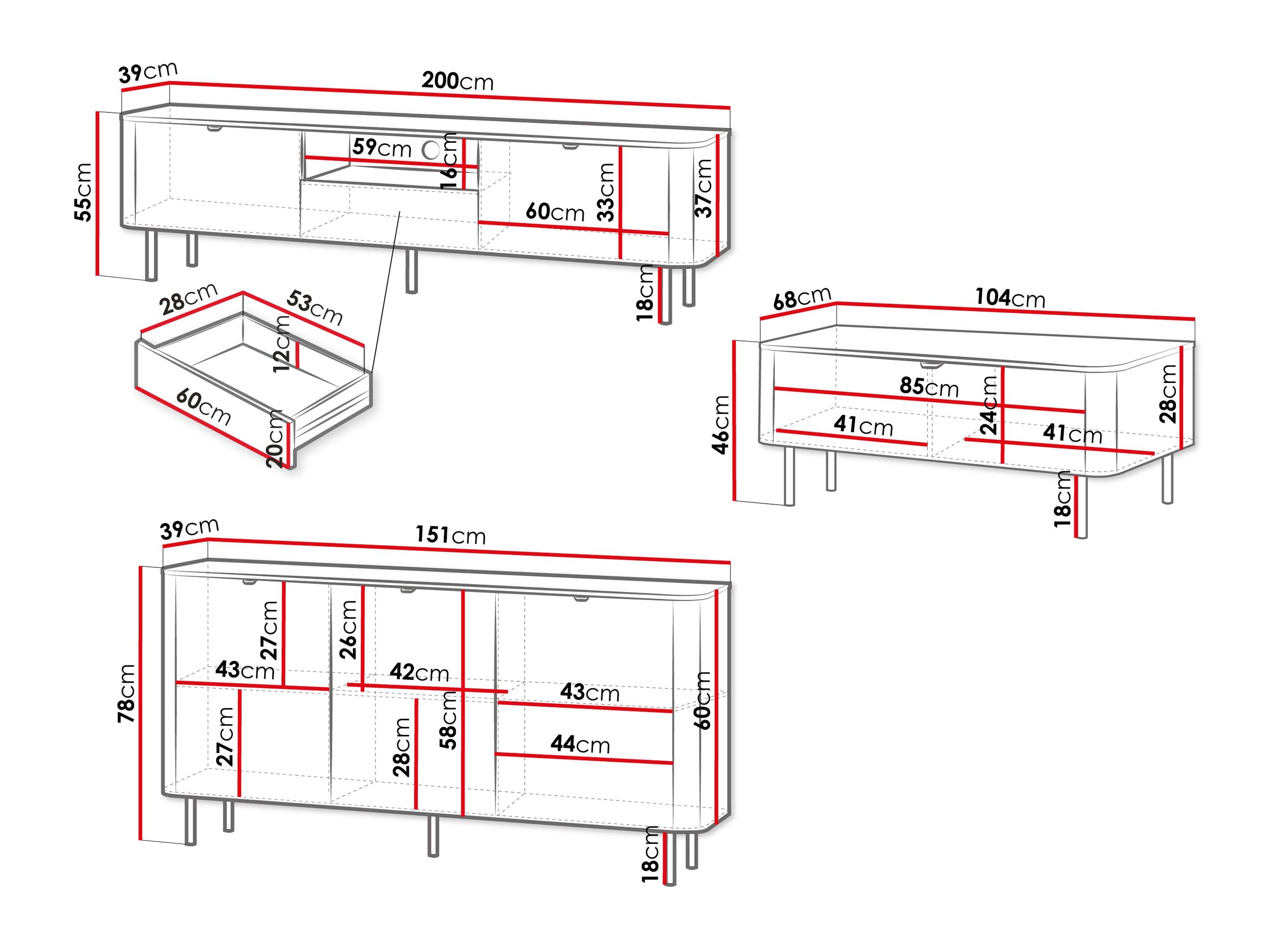 55 x 200 x 39 cm