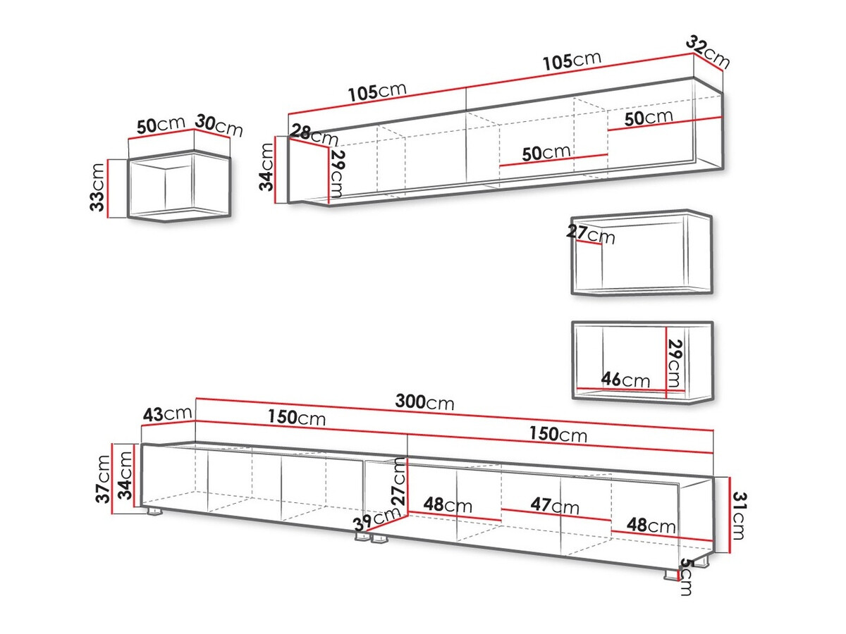 Seinäkiinnitystiedot. Seinään kiinnitettävissä tai ripustettavissa huonekaluissa ei ole mukana kiinnitysruuveja, joten ne on hankittava erikseen. Ruuvit ja poraussyvyys tulee valita seinän mukaan. Valitse asennustyökalut huonekalujen painon ja seinän materiaalin mukaan, kuten kipsilevy, tiili tai puu. Kiinnityksen laadun ja turvallisuuden takaamiseksi tulee käyttää seinätyypille suunniteltuja ruuveja.