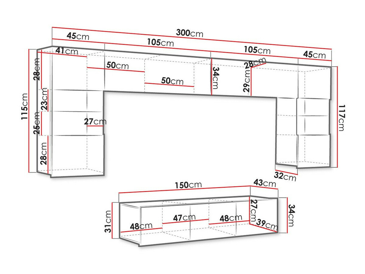 31 x 150 x 43 cm