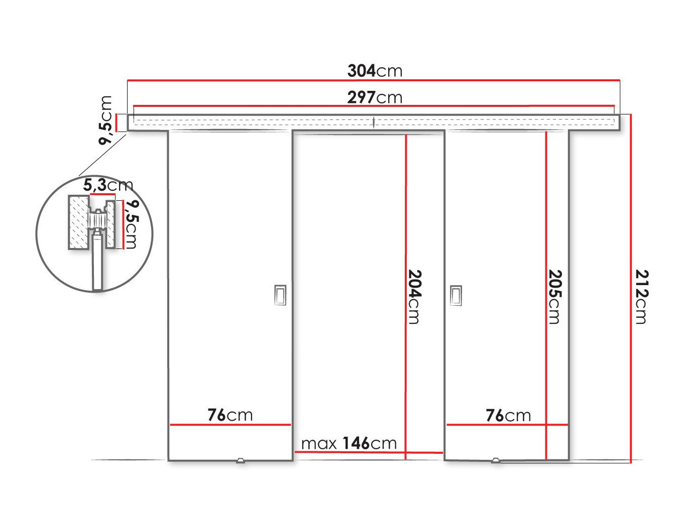 Liukuovijärjestelmän mitat: