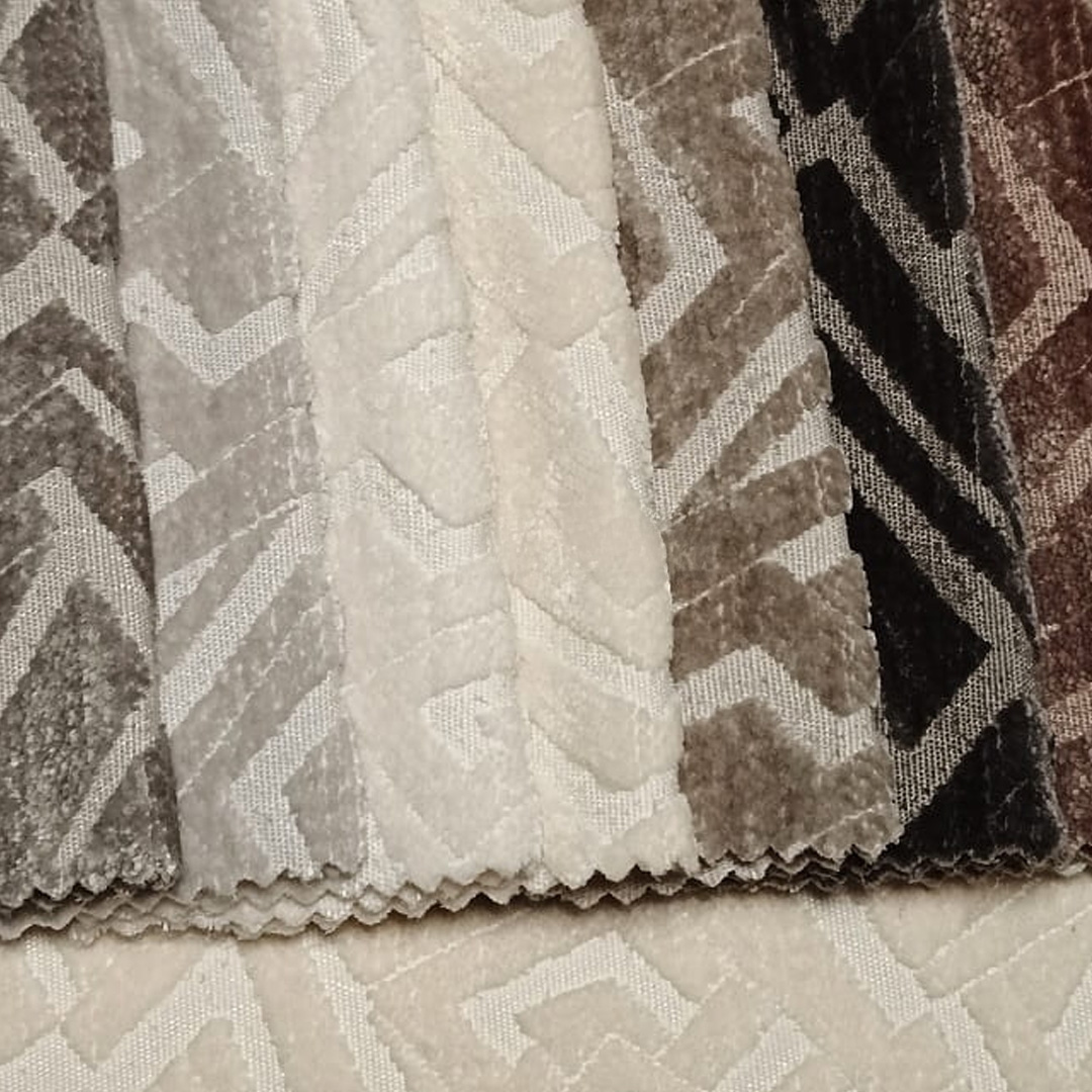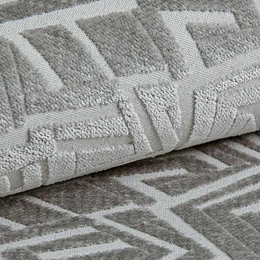 Kohokuvioitu kangas, jossa on 3D-efektin omaavat geometriset kuviot, tekee siitä ihanteellisen lisän mihin tahansa sisustukseen. Parhaan mahdollisen hoidon saavuttamiseksi on suositeltavaa puhdistaa pinta vain miedoilla, verhoiluun tarkoitetuilla puhdistusaineilla.