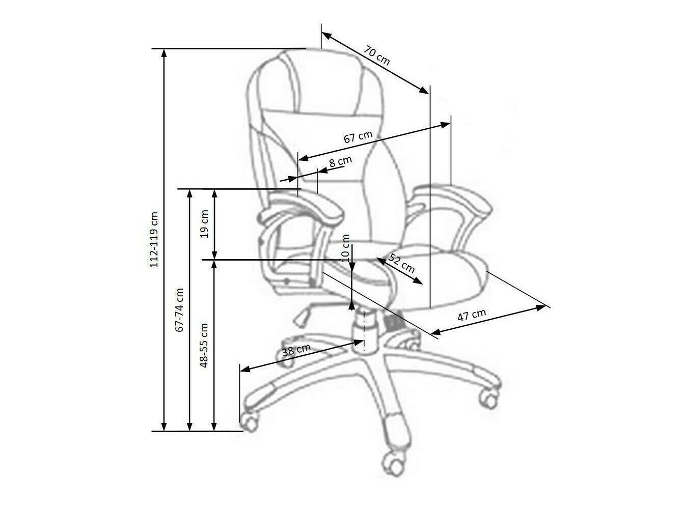 Päätyyny on lähellä lapaluitani. Olen 175 cm pitkä. Tämä ei ole aikuisille tarkoitettu huonekalu. Se saattaa sopia lyhyille naisille, mutta se on epämukava 175-vuotiaille tai sitä pitemmille miehille ja naisille. Myös jousi on niin vahva, että makuuasennossa on mahdotonta pysyä, koska tuoli palaa istuma-asentoon. Mutta olen raskas, enkä voi pitää sitä makuuasennossa. Kokonsa vuoksi se on epämukava. Materiaalien käytön vuoksi se saa 1 tähden, koska se täyttää odotukset, ja 1 tähden, koska se on kestävä.