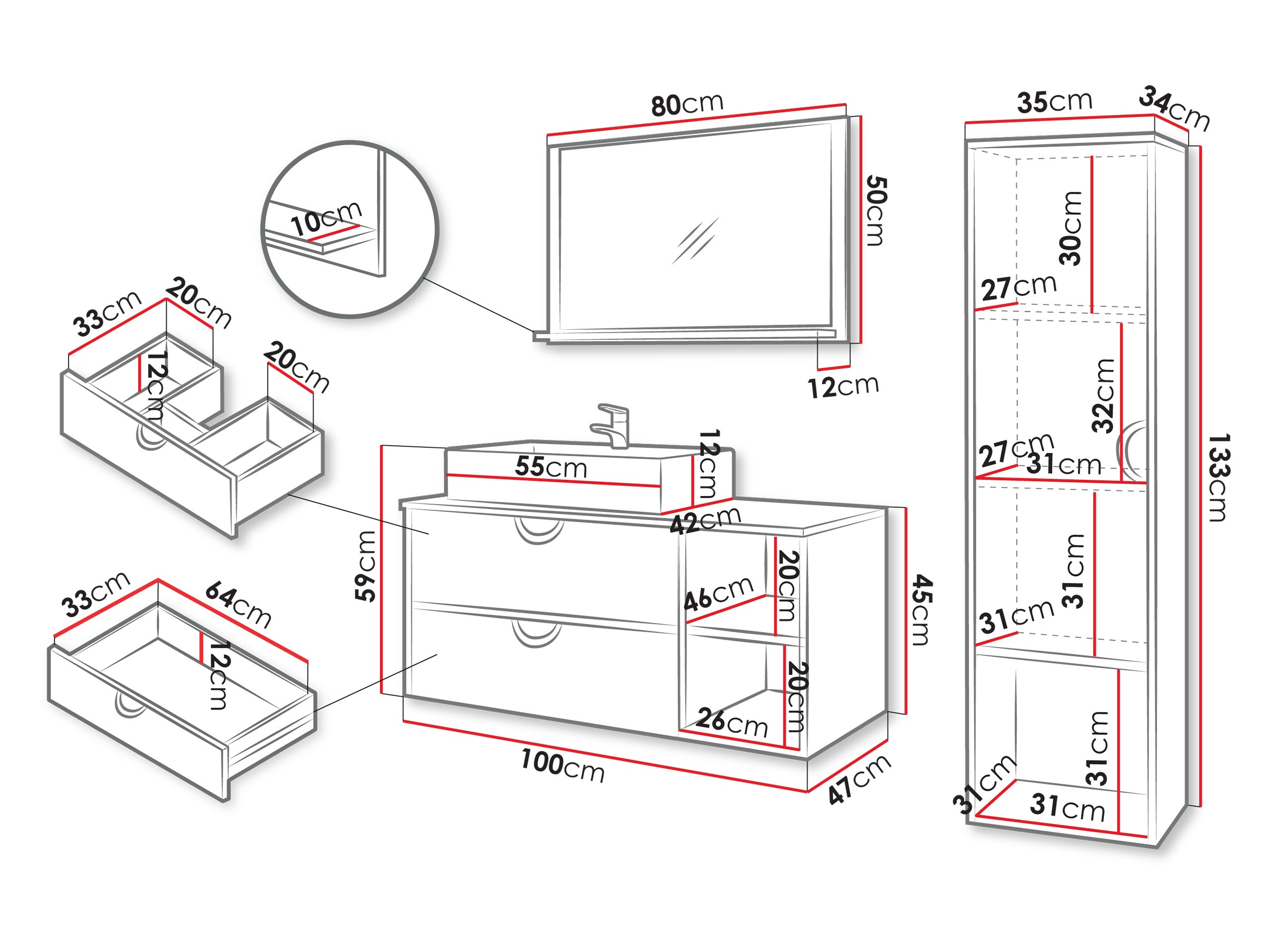 45 x 100 x 47 cm