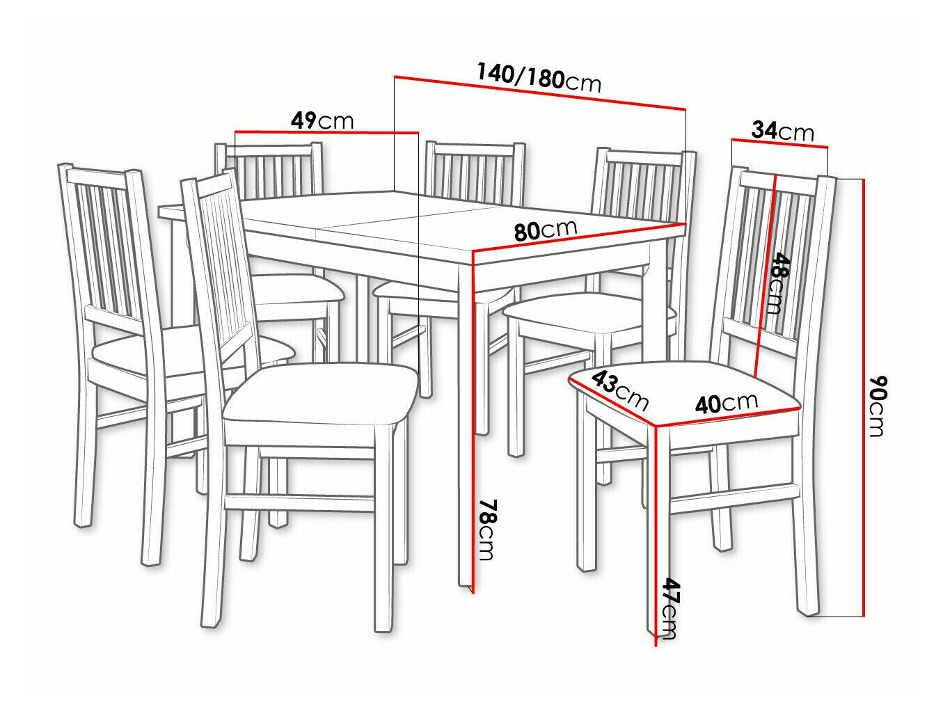 78 cm  80 cm  140 cm