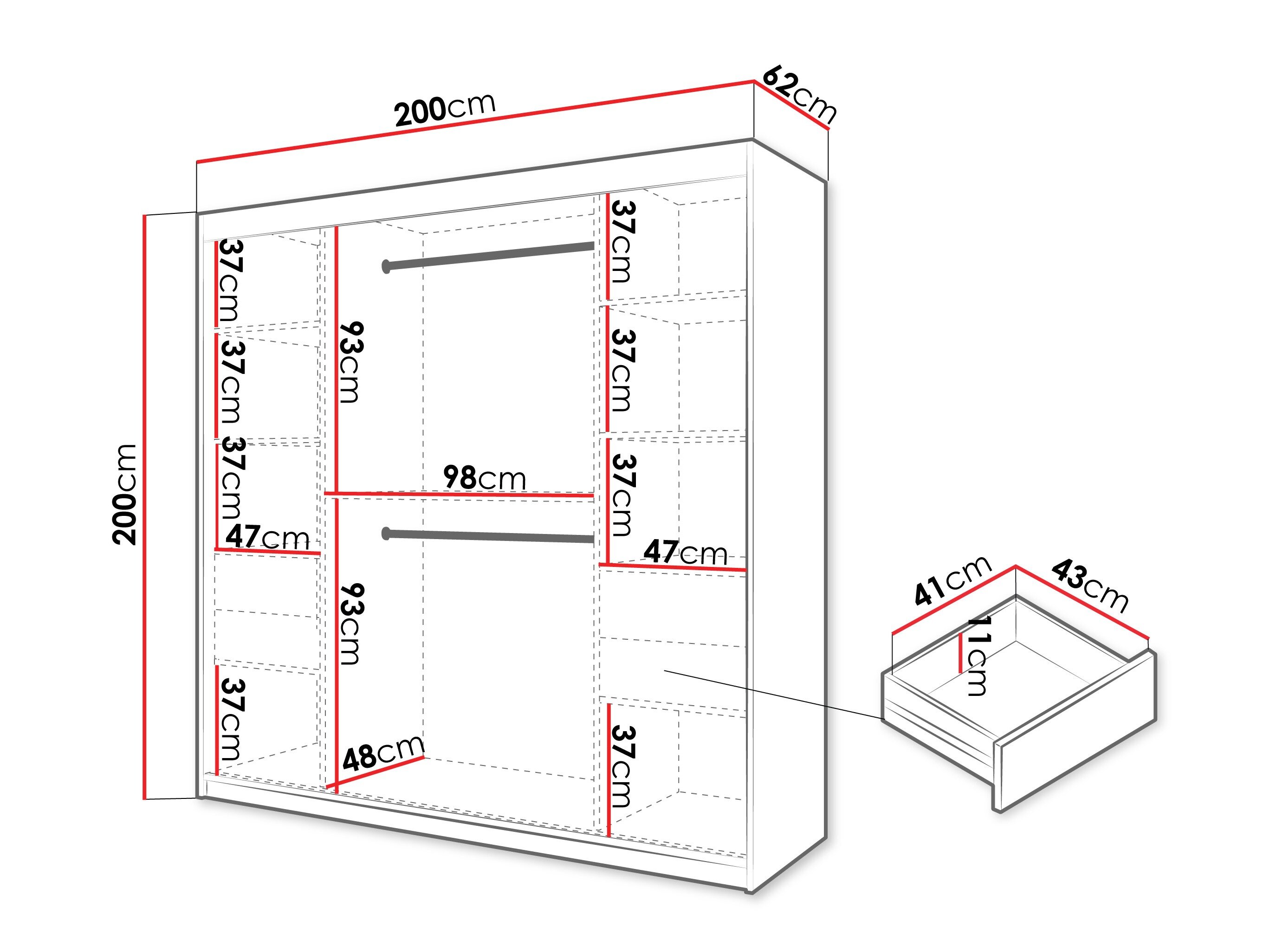 200 cm  180 cm  62 cm