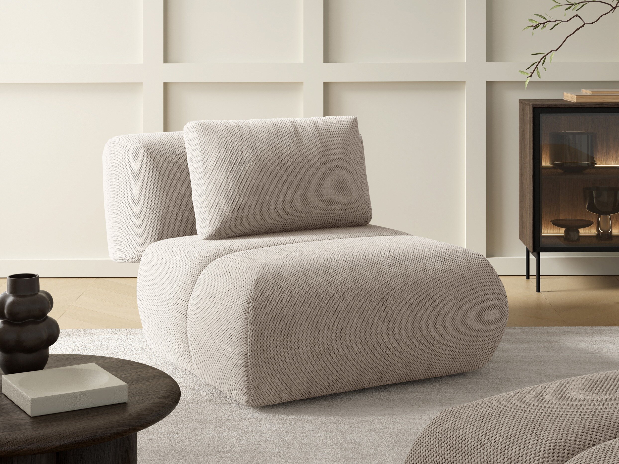 Huonekalujen takana oleva kangas ei eroa huonekalujen muusta kankaasta. Voit sijoittaa nämä huonekalut huoneen keskelle.