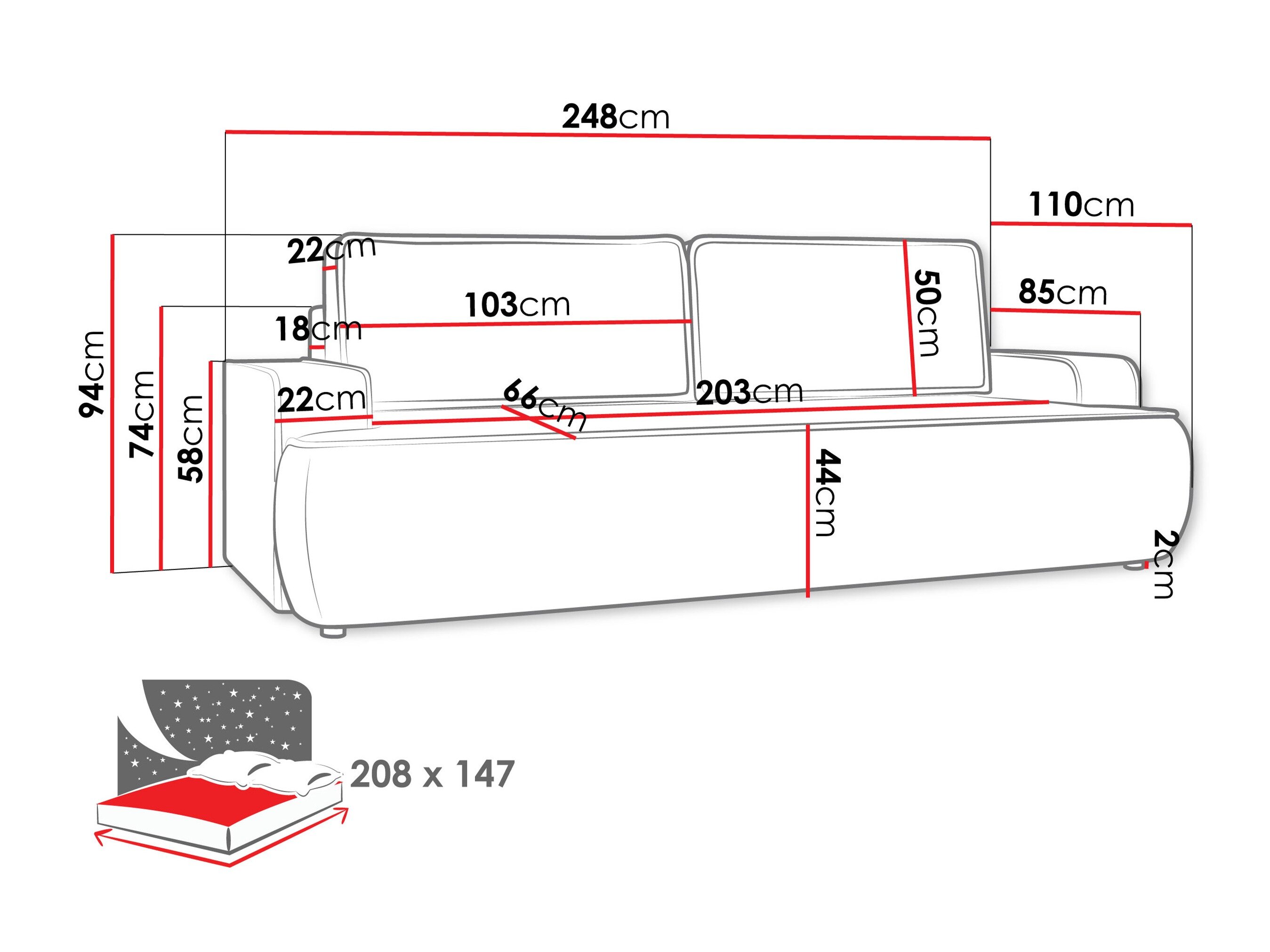 208 cm
