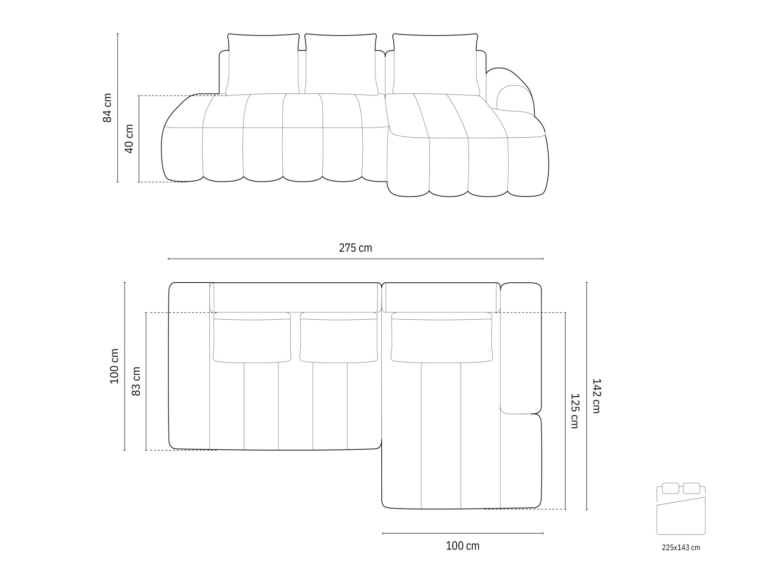 20 x 79 x 144 cm